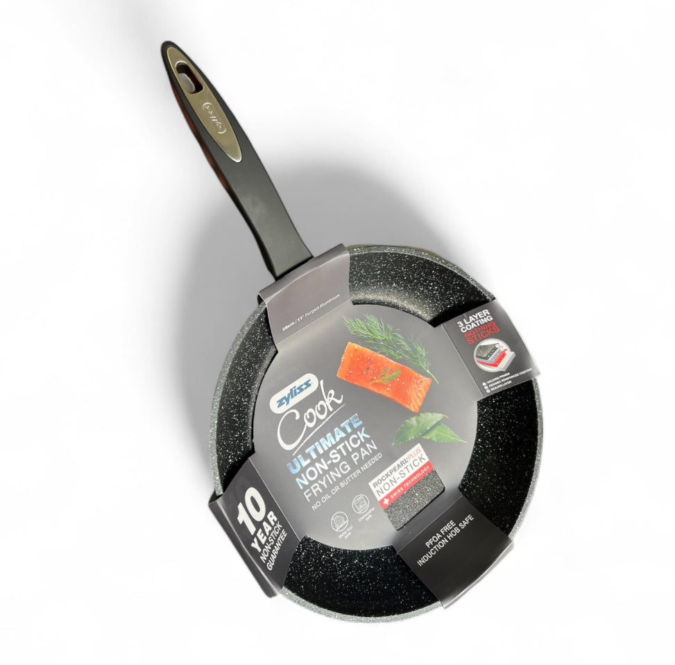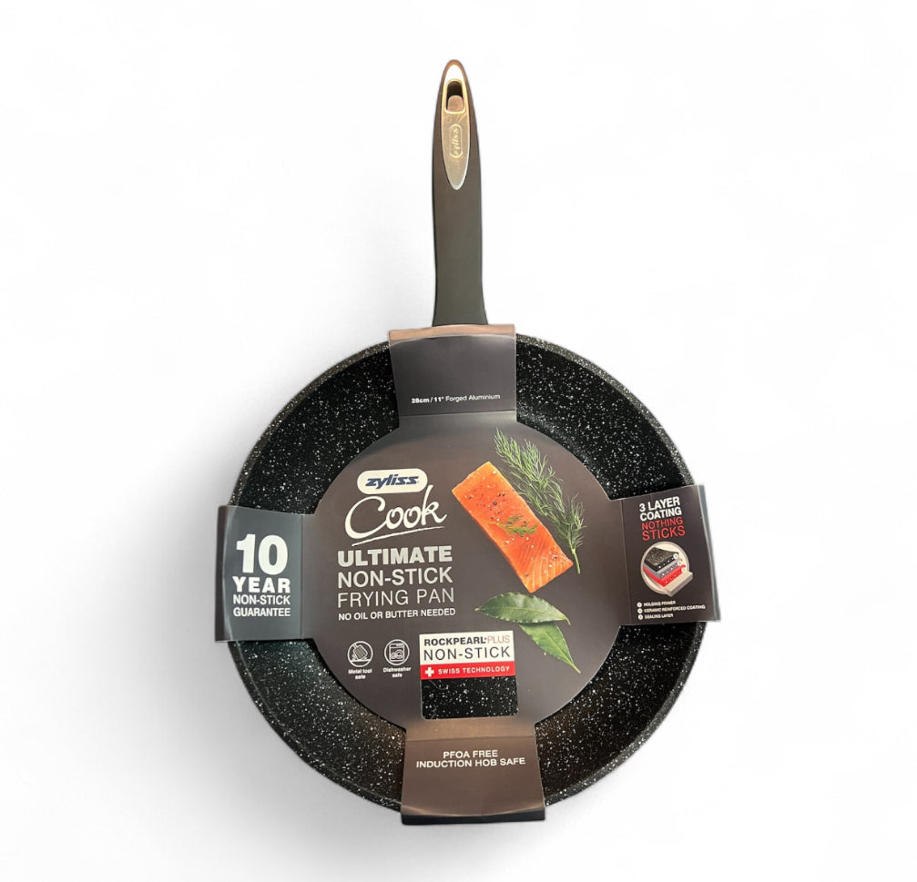 Desenvolvida pela Suíça Zyliss, a nova linha de frigideiras Cook irá mudar a forma de preparar os seus alimentos, sem a utilização de óleo ou manteiga deixando seus pratos mais saudáveis e muito mais saborosos. Com tecnologia avançada de 3 camadas, sendo uma das melhores variedades de frigideiras antiaderentes. Possui um sistema de aquecimento fazendo com que sua comida cozinhe de forma rápida e uniforme. Fabricada em alumínio forjado, possui cabo em silicone e pode ser usada com qualquer tipo de utensílio, inclusive de inox ou metal. Ainda conta com cabo ergonômico que dará mais segurança no manuseio. Pode ser usado no fogão de indução e ir ao forno com até 180°C. Produzida pela Suíça Zyliss, marca mundialmente reconhecida por seu portfólio atraente de utensílios e visão de antecipar mudanças e tendências do estilo de vida de seus consumidores. Ficha técnica: • Código: 4088590598 • Marca: Zyliss • Modelo: Cook • Conteúdo da Embalagem: 1 Frigideira •Especificações do produto: Pode ser usado em todas as fontes de calor, incluindo a indução • Material: Alumínio • Peso: 1,100kg • Dimensões: 7cm x 28cm x 47cm (AxLxP) • Garantia: 10 Anos no antiaderente • Produto com certificação compulsória certificada pelo SGS do Brasil, registro 002090/2019, classificação de antiaderência B
