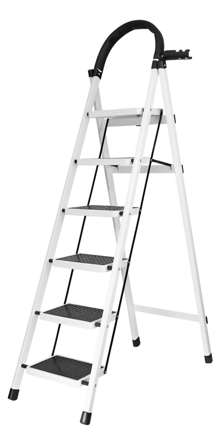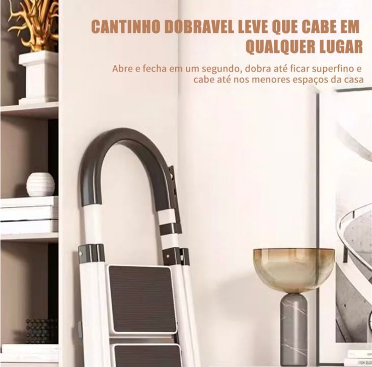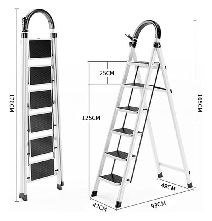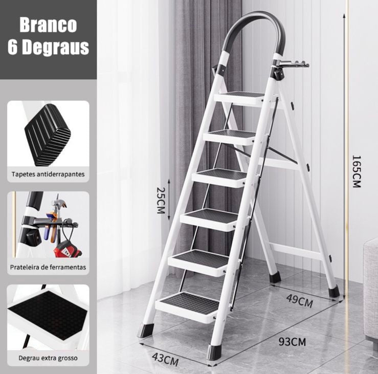 Seja para uso em casa, no escritório ou, a escada é altamente versátil. Graças ao seu design dobrável, ela se dobra rapidamente após o uso, ocupando mínimo espaço no armário, garagem ou caminhão.